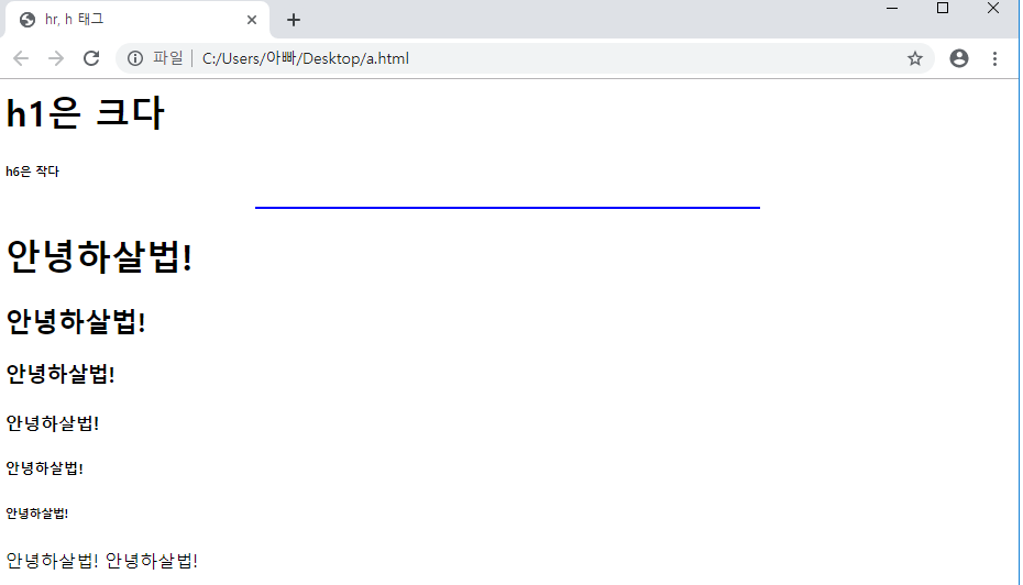 <h1> h1은 크다</h1> <h6>h6은 작다 </h6>