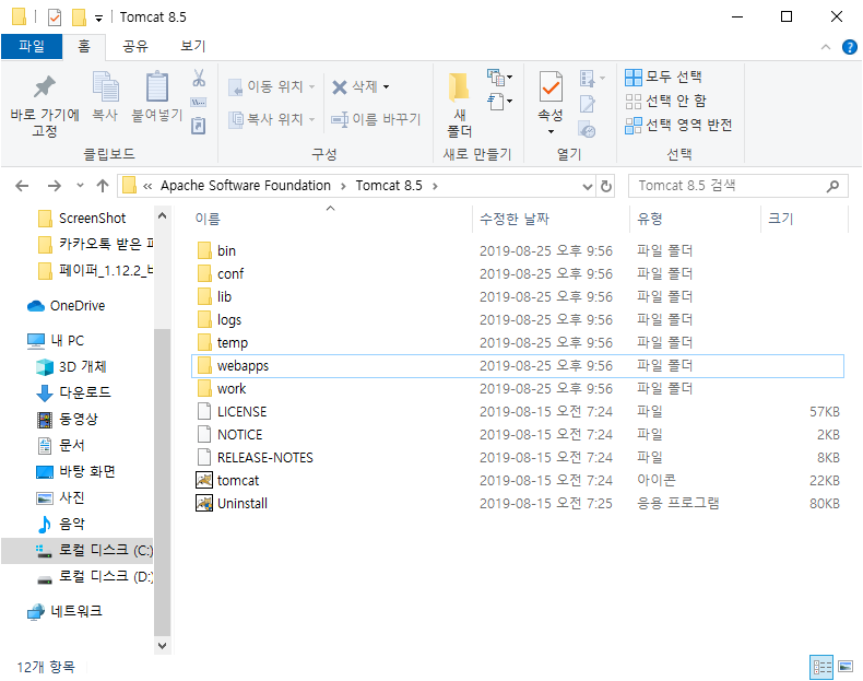 webapps와 work가 컨텍스트 폴더(프로젝트명)이고