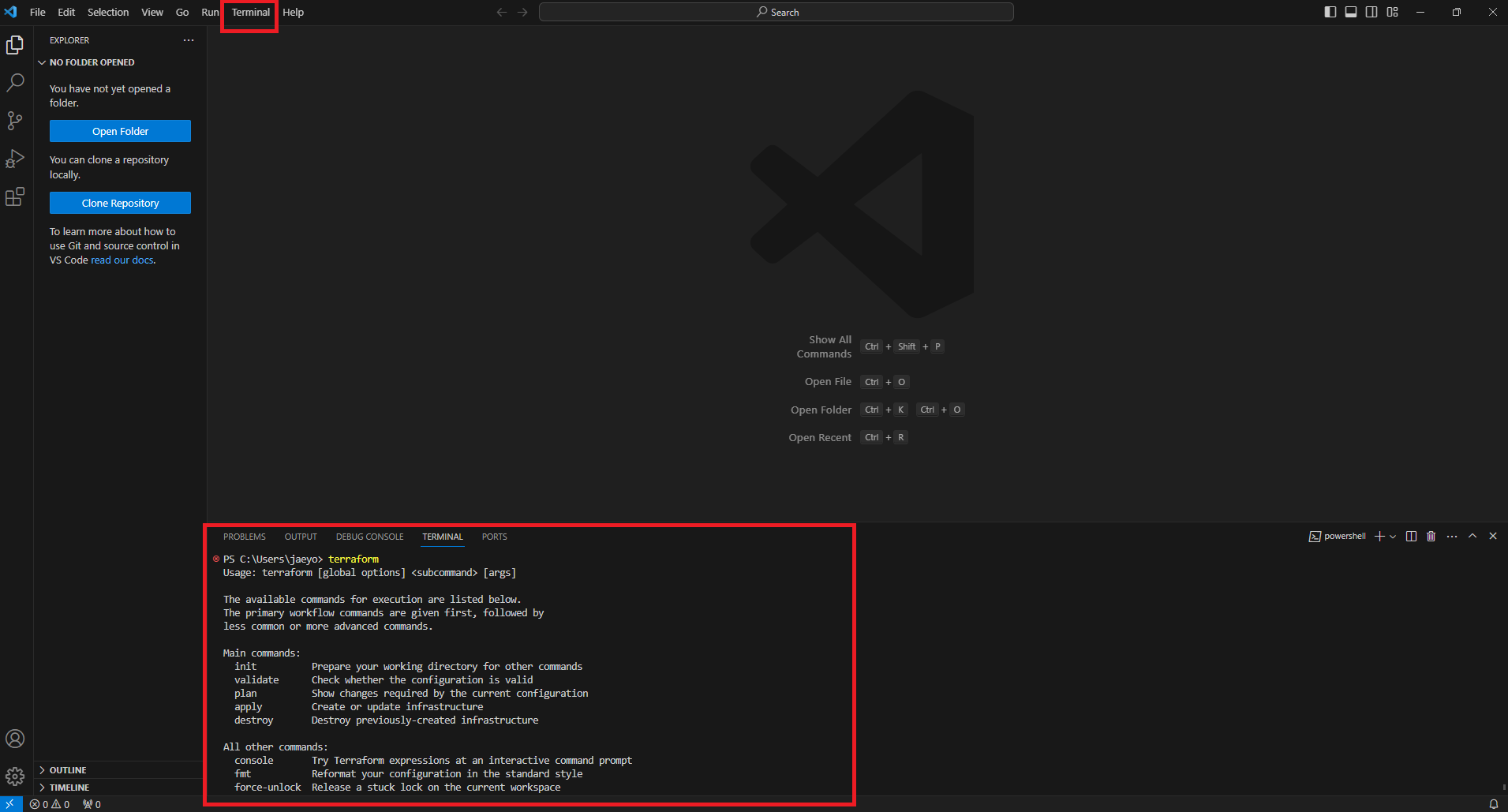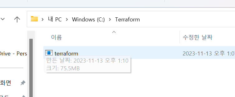terraform init 명령으로 다운받기 까지 완료한 상태이다.
