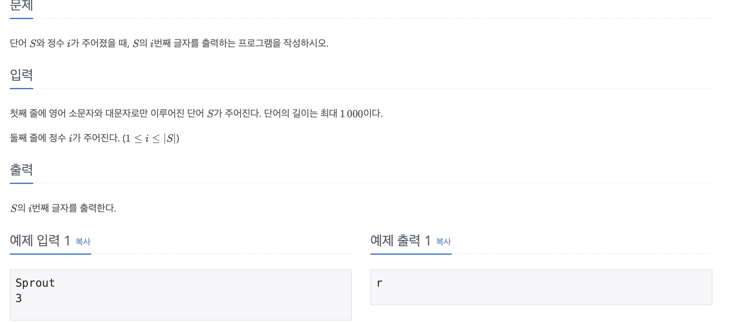 - [백준] - 27866 - 문자와 문자열 2023.10.30