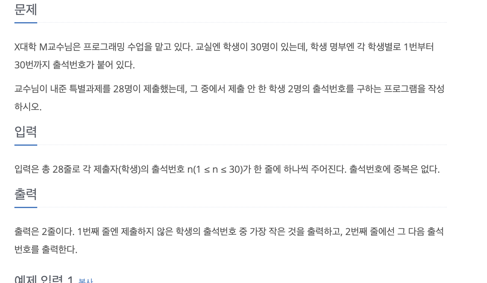 - [백준] - 5597 - 과제 안 내신 분..? 2023.10.26