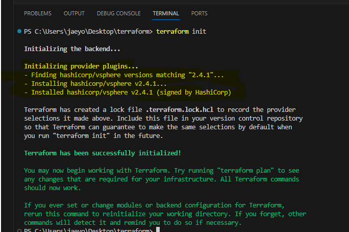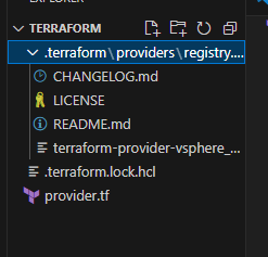 여기까지하면, 나는 테라폼으로 vsphere 를 제어할껀데, 필요한 sdk 를 받을꺼라는 것을 provider.tf 에 적어준것이고