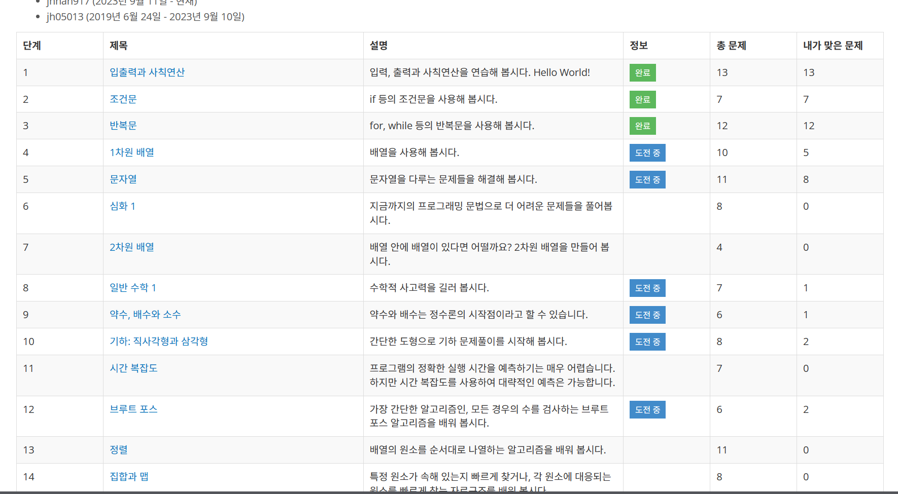- [백준] - 단계별 문제 풀기 현황 2023.10.23